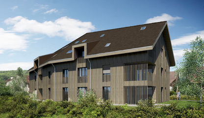 Die Wohnüberbauung Im Dorf verfügt über 9 Mietwohnungen jeweils mit Loggia.